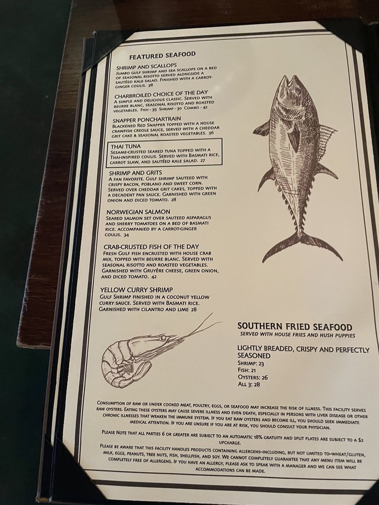 Fresh gulf fish blackened or chargrilled with lemon butter, rice and roasted vegetables.