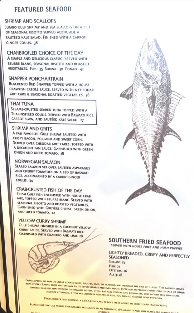 Lightly breaded, crispy and perfectly seasoned. Served with fries and hush puppies