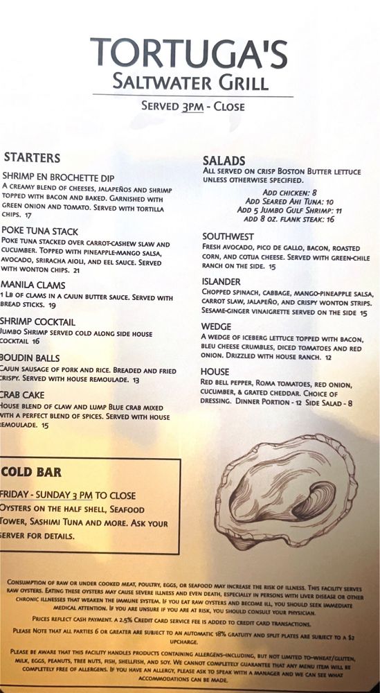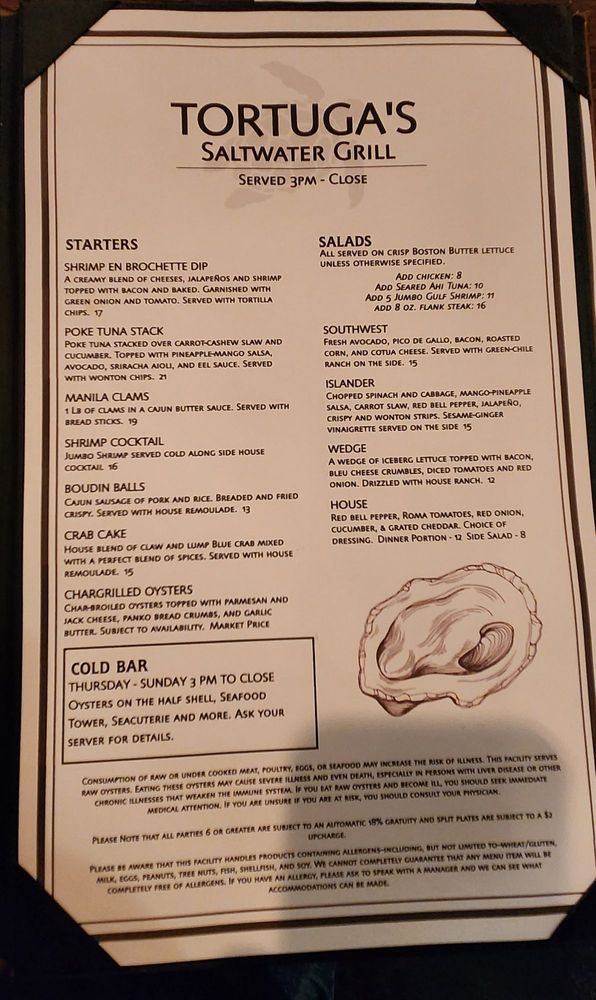 Introducing Tortuga's Saltwater Grill, a New American restaurant located in Port Aransas, TX. Known for their delightful mix of steakhouses and seafood, Tortuga's offers a wide range of menu options for all preferences, including many vegetarian choices. Their inviting ambiance, with casual, trendy, romantic, and upscale vibes, sets the perfect scene for a relaxing dining experience. Customers rave about the delectable dishes, such as the southern fried shrimp, oysters, crab cakes, and crab bisque. The attentive waitstaff adds to the overall pleasant dining atmosphere, providing top-notch service. With a variety of payment options, outdoor seating, and catering services available, Tortuga's Saltwater Grill is a must-visit destination for those looking for a satisfying and delicious meal in Port Aransas.